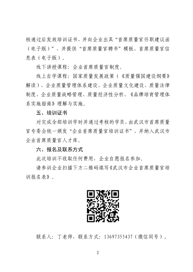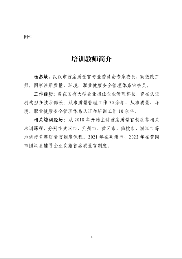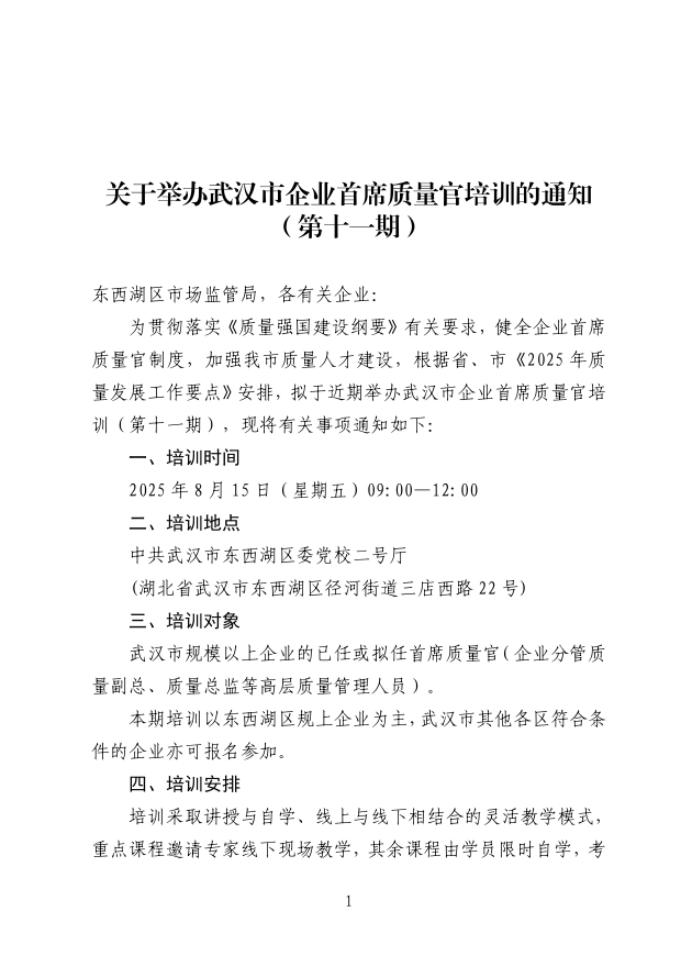 關(guān)于舉辦武漢市企業(yè)首席質(zhì)量官培訓(xùn)的通知(第十一期)